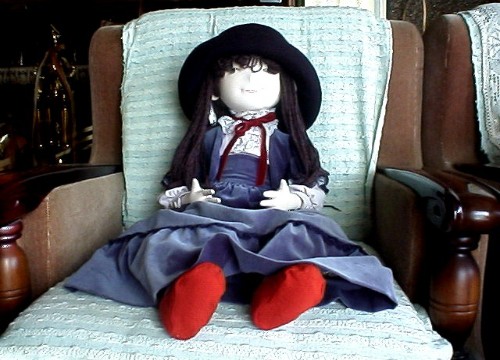 ビロードの洋服と帽子がが良く似合うミステリアスな美女エリーです。